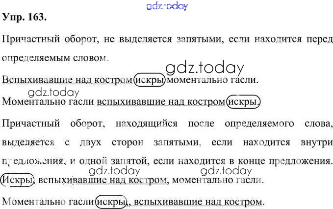 На страницах сайта gdz.today вы найдете учебный и вспомогательный материал, направленный на улучшения знаний школьной программы. ГДЗ - онлайн мир знаний Упражнения Часть 1 (решение) 163 Учебнику по Русскому языку для 7 класса Быстрова, Кибирева Русское слово Инновационная школа 2019