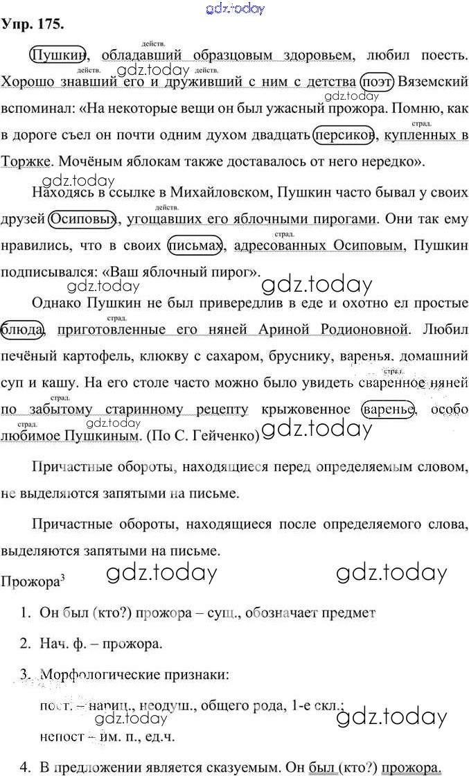 На страницах сайта gdz.today вы найдете учебный и вспомогательный материал, направленный на улучшения знаний школьной программы. ГДЗ - онлайн мир знаний Упражнения Часть 1 (решение) 175 Учебнику по Русскому языку для 7 класса Быстрова, Кибирева Русское слово Инновационная школа 2019