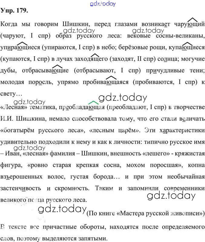 На страницах сайта gdz.today вы найдете учебный и вспомогательный материал, направленный на улучшения знаний школьной программы. ГДЗ - онлайн мир знаний Упражнения Часть 1 (решение) 179 Учебнику по Русскому языку для 7 класса Быстрова, Кибирева Русское слово Инновационная школа 2019