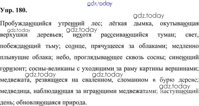 На страницах сайта gdz.today вы найдете учебный и вспомогательный материал, направленный на улучшения знаний школьной программы. ГДЗ - онлайн мир знаний Упражнения Часть 1 (решение) 180 Учебнику по Русскому языку для 7 класса Быстрова, Кибирева Русское слово Инновационная школа 2019