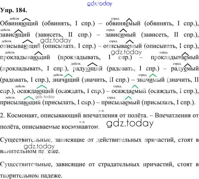 На страницах сайта gdz.today вы найдете учебный и вспомогательный материал, направленный на улучшения знаний школьной программы. ГДЗ - онлайн мир знаний Упражнения Часть 1 (решение) 184 Учебнику по Русскому языку для 7 класса Быстрова, Кибирева Русское слово Инновационная школа 2019