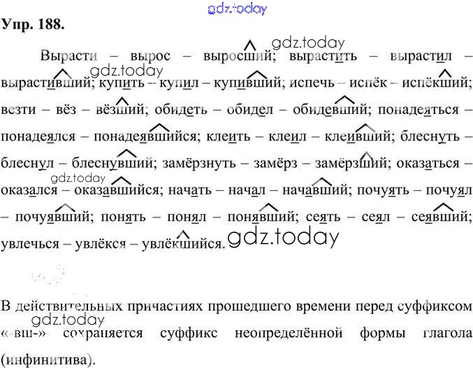 На страницах сайта gdz.today вы найдете учебный и вспомогательный материал, направленный на улучшения знаний школьной программы. ГДЗ - онлайн мир знаний Упражнения Часть 1 (решение) 188 Учебнику по Русскому языку для 7 класса Быстрова, Кибирева Русское слово Инновационная школа 2019