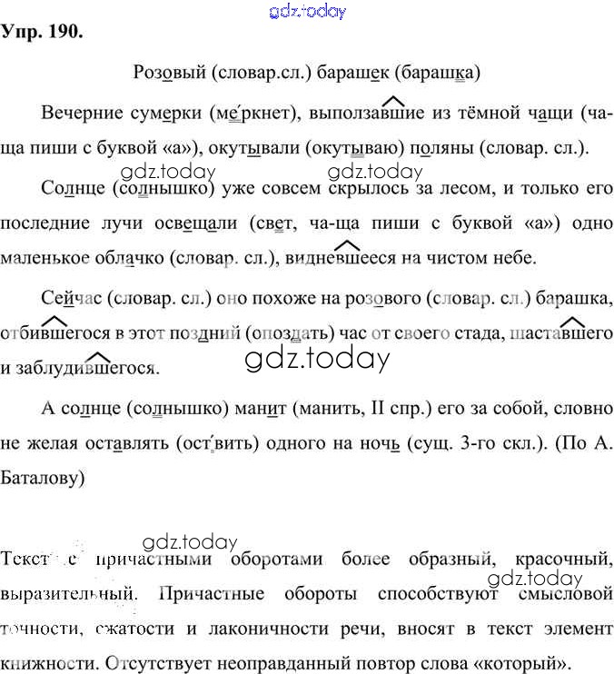 На страницах сайта gdz.today вы найдете учебный и вспомогательный материал, направленный на улучшения знаний школьной программы. ГДЗ - онлайн мир знаний Упражнения Часть 1 (решение) 190 Учебнику по Русскому языку для 7 класса Быстрова, Кибирева Русское слово Инновационная школа 2019