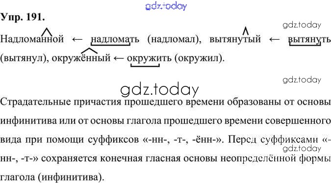 На страницах сайта gdz.today вы найдете учебный и вспомогательный материал, направленный на улучшения знаний школьной программы. ГДЗ - онлайн мир знаний Упражнения Часть 1 (решение) 191 Учебнику по Русскому языку для 7 класса Быстрова, Кибирева Русское слово Инновационная школа 2019