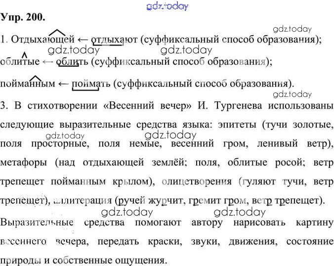 На страницах сайта gdz.today вы найдете учебный и вспомогательный материал, направленный на улучшения знаний школьной программы. ГДЗ - онлайн мир знаний Упражнения Часть 1 (решение) 200 Учебнику по Русскому языку для 7 класса Быстрова, Кибирева Русское слово Инновационная школа 2019