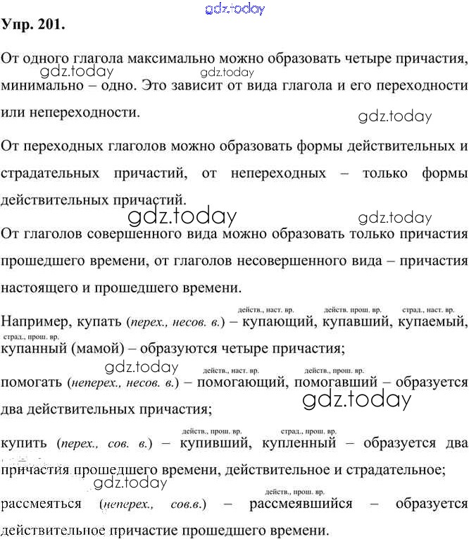 На страницах сайта gdz.today вы найдете учебный и вспомогательный материал, направленный на улучшения знаний школьной программы. ГДЗ - онлайн мир знаний Упражнения Часть 1 (решение) 201 Учебнику по Русскому языку для 7 класса Быстрова, Кибирева Русское слово Инновационная школа 2019