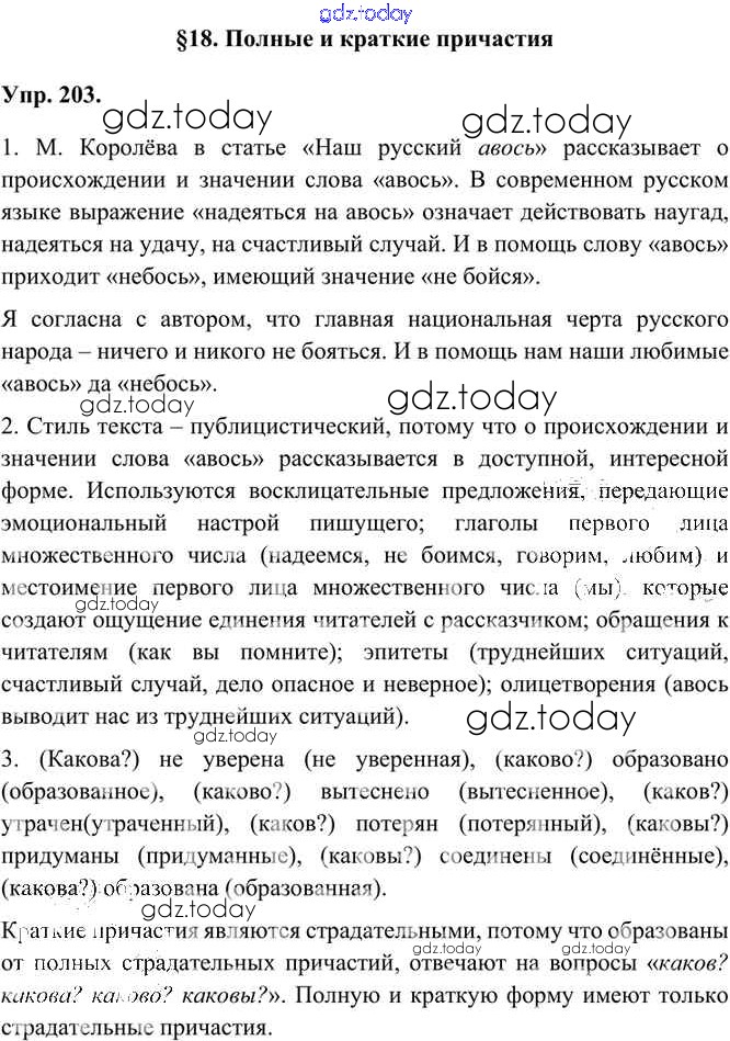 На страницах сайта gdz.today вы найдете учебный и вспомогательный материал, направленный на улучшения знаний школьной программы. ГДЗ - онлайн мир знаний Упражнения Часть 1 (решение) 203 Учебнику по Русскому языку для 7 класса Быстрова, Кибирева Русское слово Инновационная школа 2019