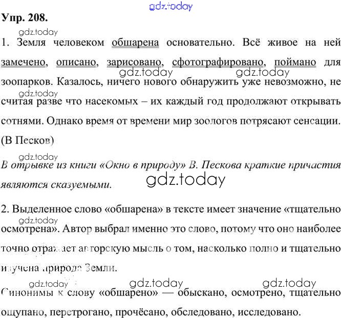 На страницах сайта gdz.today вы найдете учебный и вспомогательный материал, направленный на улучшения знаний школьной программы. ГДЗ - онлайн мир знаний Упражнения Часть 1 (решение) 208 Учебнику по Русскому языку для 7 класса Быстрова, Кибирева Русское слово Инновационная школа 2019