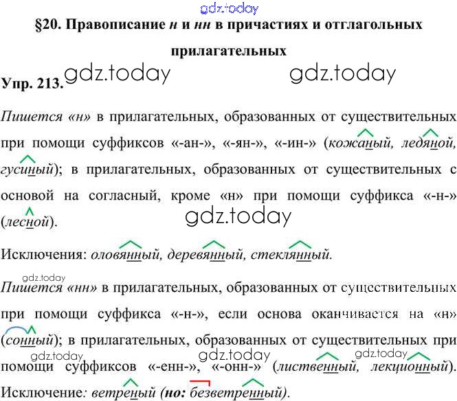 На страницах сайта gdz.today вы найдете учебный и вспомогательный материал, направленный на улучшения знаний школьной программы. ГДЗ - онлайн мир знаний Упражнения Часть 1 (решение) 213 Учебнику по Русскому языку для 7 класса Быстрова, Кибирева Русское слово Инновационная школа 2019