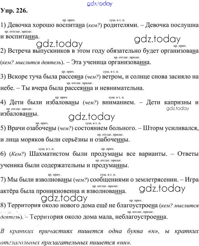 На страницах сайта gdz.today вы найдете учебный и вспомогательный материал, направленный на улучшения знаний школьной программы. ГДЗ - онлайн мир знаний Упражнения Часть 1 (решение) 226 Учебнику по Русскому языку для 7 класса Быстрова, Кибирева Русское слово Инновационная школа 2019