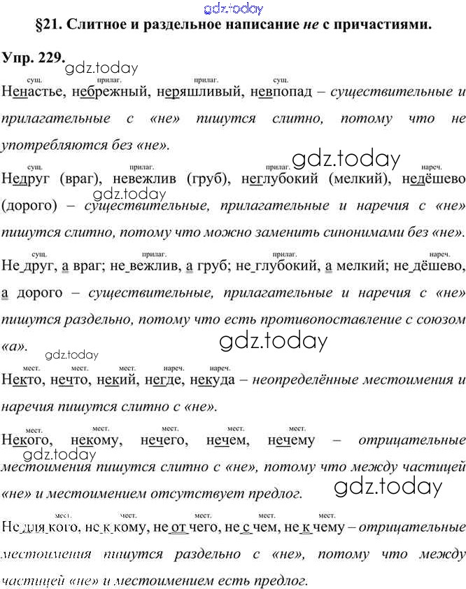 На страницах сайта gdz.today вы найдете учебный и вспомогательный материал, направленный на улучшения знаний школьной программы. ГДЗ - онлайн мир знаний Упражнения Часть 1 (решение) 229 Учебнику по Русскому языку для 7 класса Быстрова, Кибирева Русское слово Инновационная школа 2019