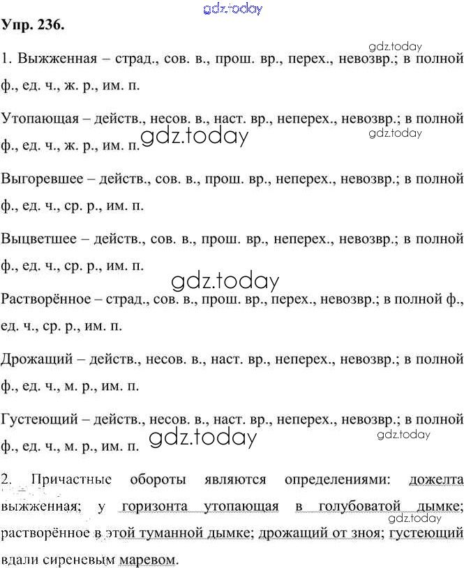 На страницах сайта gdz.today вы найдете учебный и вспомогательный материал, направленный на улучшения знаний школьной программы. ГДЗ - онлайн мир знаний Упражнения Часть 1 (решение) 236 Учебнику по Русскому языку для 7 класса Быстрова, Кибирева Русское слово Инновационная школа 2019