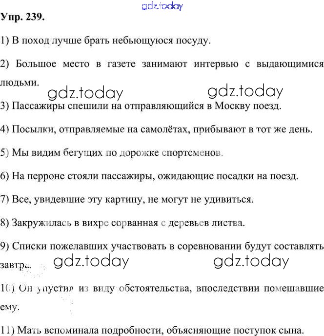На страницах сайта gdz.today вы найдете учебный и вспомогательный материал, направленный на улучшения знаний школьной программы. ГДЗ - онлайн мир знаний Упражнения Часть 1 (решение) 239 Учебнику по Русскому языку для 7 класса Быстрова, Кибирева Русское слово Инновационная школа 2019