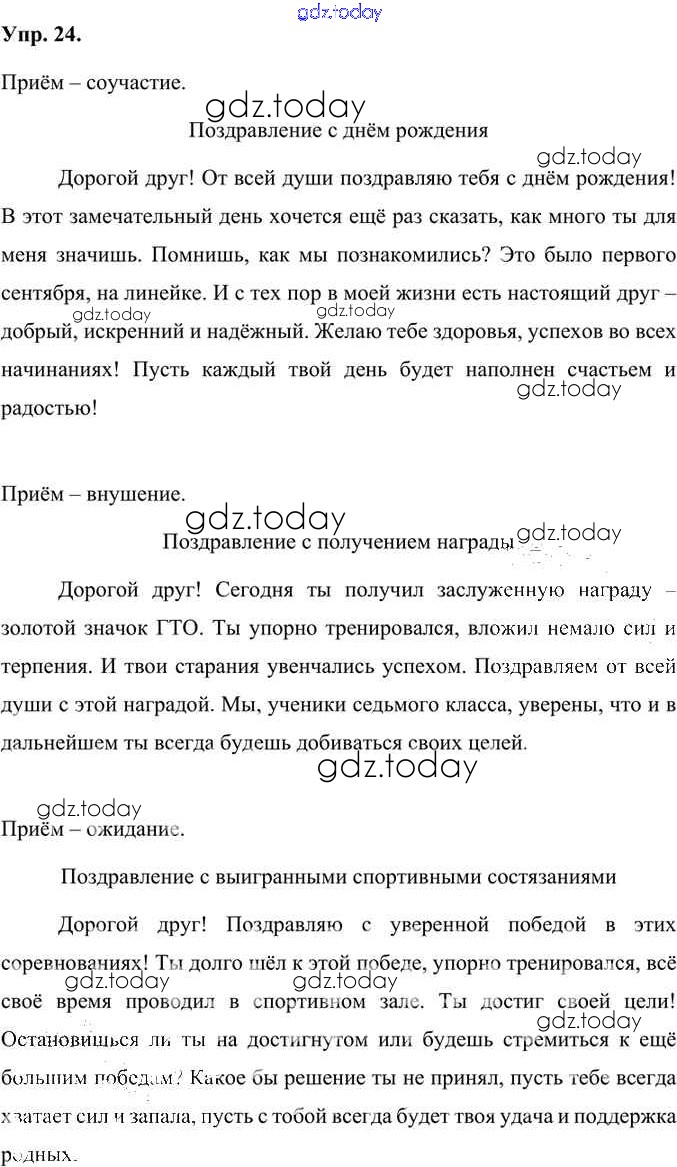 На страницах сайта gdz.today вы найдете учебный и вспомогательный материал, направленный на улучшения знаний школьной программы. ГДЗ - онлайн мир знаний Упражнения Часть 1 (решение) 24 Учебнику по Русскому языку для 7 класса Быстрова, Кибирева Русское слово Инновационная школа 2019