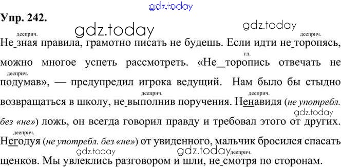 На страницах сайта gdz.today вы найдете учебный и вспомогательный материал, направленный на улучшения знаний школьной программы. ГДЗ - онлайн мир знаний Упражнения Часть 1 (решение) 242 Учебнику по Русскому языку для 7 класса Быстрова, Кибирева Русское слово Инновационная школа 2019