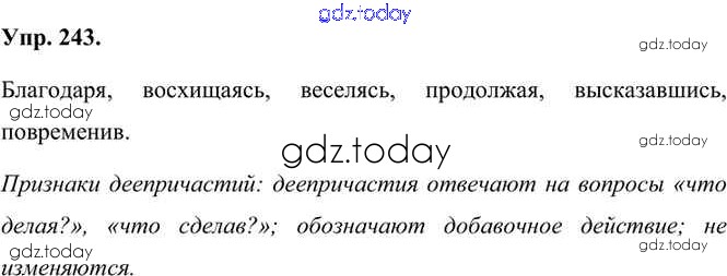 На страницах сайта gdz.today вы найдете учебный и вспомогательный материал, направленный на улучшения знаний школьной программы. ГДЗ - онлайн мир знаний Упражнения Часть 1 (решение) 243 Учебнику по Русскому языку для 7 класса Быстрова, Кибирева Русское слово Инновационная школа 2019
