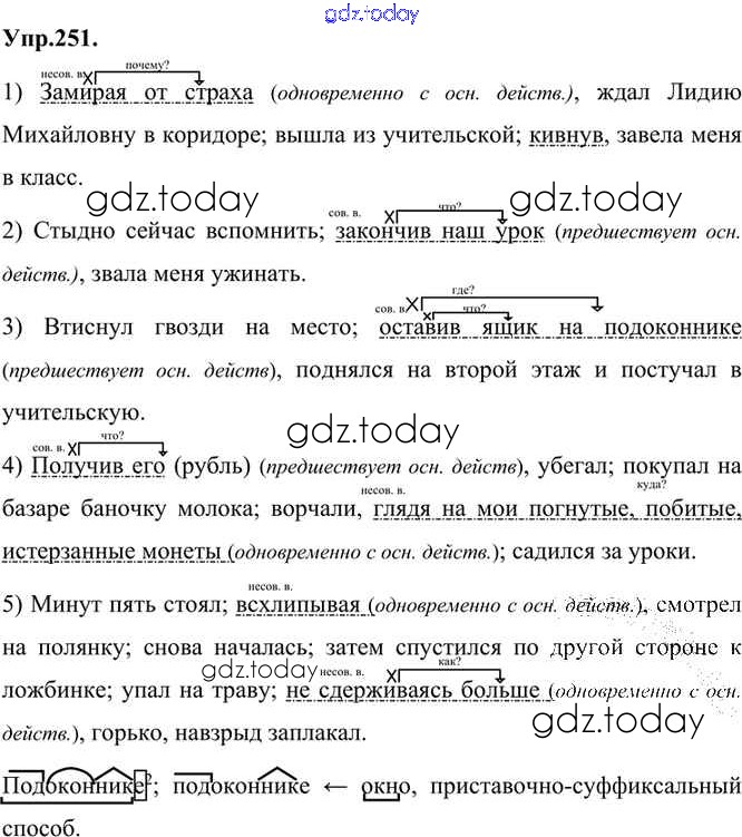 На страницах сайта gdz.today вы найдете учебный и вспомогательный материал, направленный на улучшения знаний школьной программы. ГДЗ - онлайн мир знаний Упражнения Часть 1 (решение) 251 Учебнику по Русскому языку для 7 класса Быстрова, Кибирева Русское слово Инновационная школа 2019