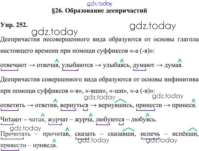 На страницах сайта gdz.today вы найдете учебный и вспомогательный материал, направленный на улучшения знаний школьной программы. ГДЗ - онлайн мир знаний Упражнения Часть 1 (решение) 252 Учебнику по Русскому языку для 7 класса Быстрова, Кибирева Русское слово Инновационная школа 2019