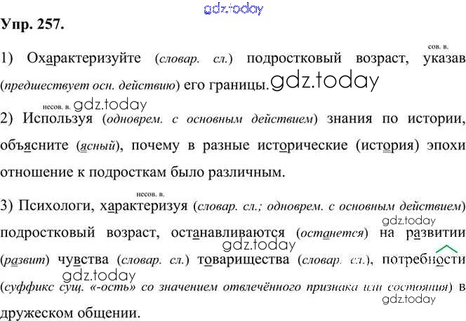 На страницах сайта gdz.today вы найдете учебный и вспомогательный материал, направленный на улучшения знаний школьной программы. ГДЗ - онлайн мир знаний Упражнения Часть 1 (решение) 257 Учебнику по Русскому языку для 7 класса Быстрова, Кибирева Русское слово Инновационная школа 2019