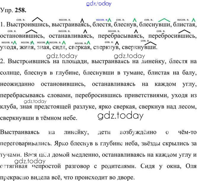 На страницах сайта gdz.today вы найдете учебный и вспомогательный материал, направленный на улучшения знаний школьной программы. ГДЗ - онлайн мир знаний Упражнения Часть 1 (решение) 258 Учебнику по Русскому языку для 7 класса Быстрова, Кибирева Русское слово Инновационная школа 2019