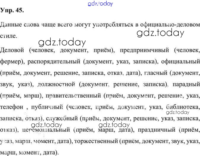 На страницах сайта gdz.today вы найдете учебный и вспомогательный материал, направленный на улучшения знаний школьной программы. ГДЗ - онлайн мир знаний Упражнения Часть 1 (решение) 45 Учебнику по Русскому языку для 7 класса Быстрова, Кибирева Русское слово Инновационная школа 2019