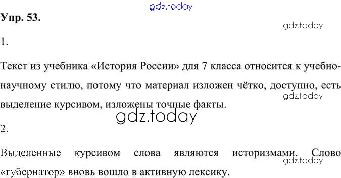 На страницах сайта gdz.today вы найдете учебный и вспомогательный материал, направленный на улучшения знаний школьной программы. ГДЗ - онлайн мир знаний Упражнения Часть 1 (решение) 53 Учебнику по Русскому языку для 7 класса Быстрова, Кибирева Русское слово Инновационная школа 2019