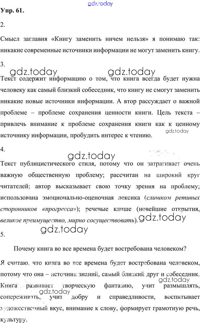 На страницах сайта gdz.today вы найдете учебный и вспомогательный материал, направленный на улучшения знаний школьной программы. ГДЗ - онлайн мир знаний Упражнения Часть 1 (решение) 61 Учебнику по Русскому языку для 7 класса Быстрова, Кибирева Русское слово Инновационная школа 2019
