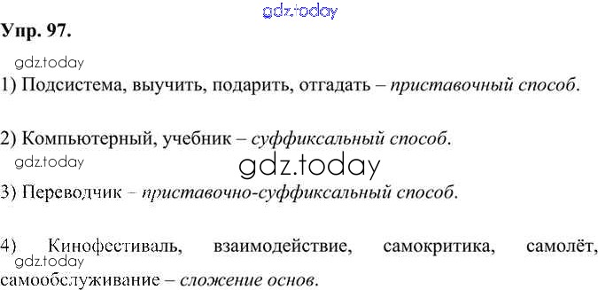 На страницах сайта gdz.today вы найдете учебный и вспомогательный материал, направленный на улучшения знаний школьной программы. ГДЗ - онлайн мир знаний Упражнения Часть 1 (решение) 97 Учебнику по Русскому языку для 7 класса Быстрова, Кибирева Русское слово Инновационная школа 2019
