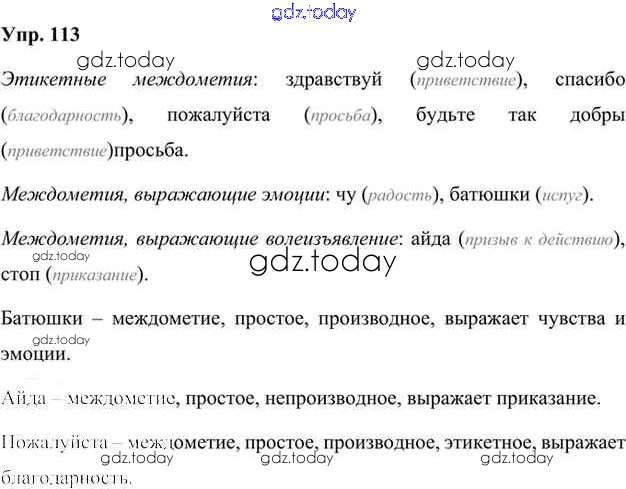 На страницах сайта gdz.today вы найдете учебный и вспомогательный материал, направленный на улучшения знаний школьной программы. ГДЗ - онлайн мир знаний Упражнения Часть 2 (решение) 113 Учебнику по Русскому языку для 7 класса Быстрова, Кибирева Русское слово Инновационная школа 2019