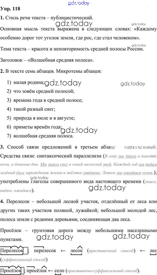 На страницах сайта gdz.today вы найдете учебный и вспомогательный материал, направленный на улучшения знаний школьной программы. ГДЗ - онлайн мир знаний Упражнения Часть 2 (решение) 118 Учебнику по Русскому языку для 7 класса Быстрова, Кибирева Русское слово Инновационная школа 2019