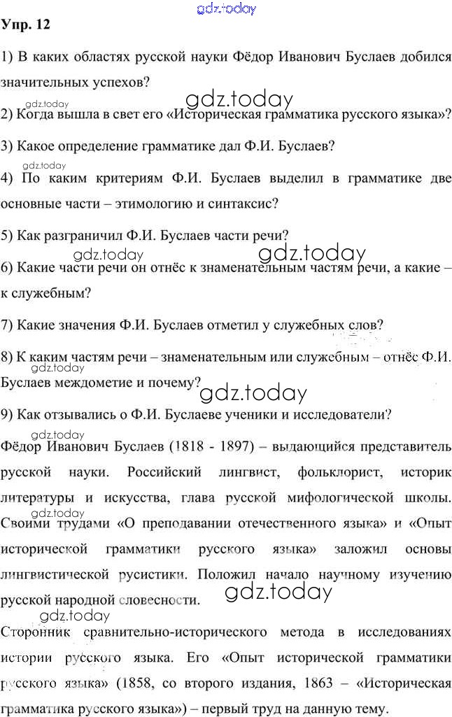 На страницах сайта gdz.today вы найдете учебный и вспомогательный материал, направленный на улучшения знаний школьной программы. ГДЗ - онлайн мир знаний Упражнения Часть 2 (решение) 12 Учебнику по Русскому языку для 7 класса Быстрова, Кибирева Русское слово Инновационная школа 2019