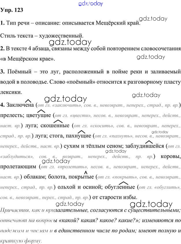 На страницах сайта gdz.today вы найдете учебный и вспомогательный материал, направленный на улучшения знаний школьной программы. ГДЗ - онлайн мир знаний Упражнения Часть 2 (решение) 123 Учебнику по Русскому языку для 7 класса Быстрова, Кибирева Русское слово Инновационная школа 2019