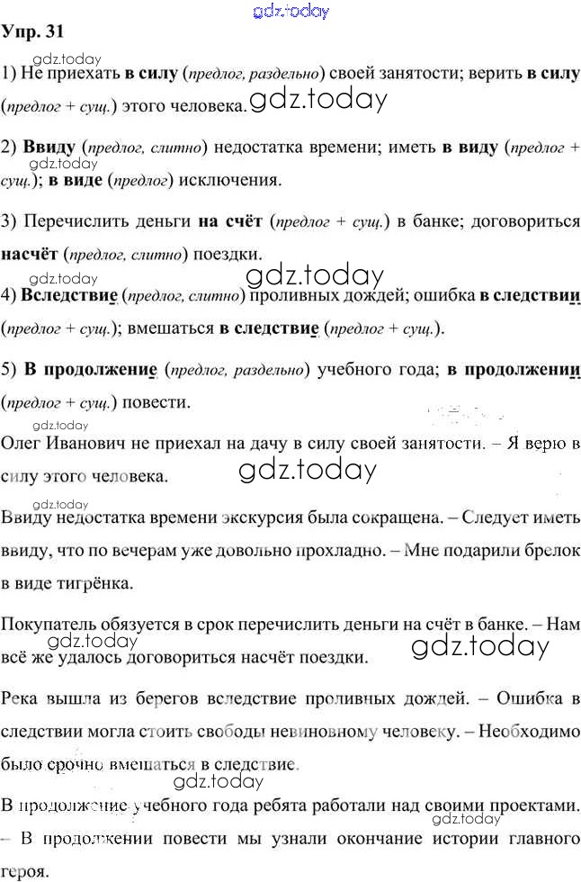 На страницах сайта gdz.today вы найдете учебный и вспомогательный материал, направленный на улучшения знаний школьной программы. ГДЗ - онлайн мир знаний Упражнения Часть 2 (решение) 31 Учебнику по Русскому языку для 7 класса Быстрова, Кибирева Русское слово Инновационная школа 2019