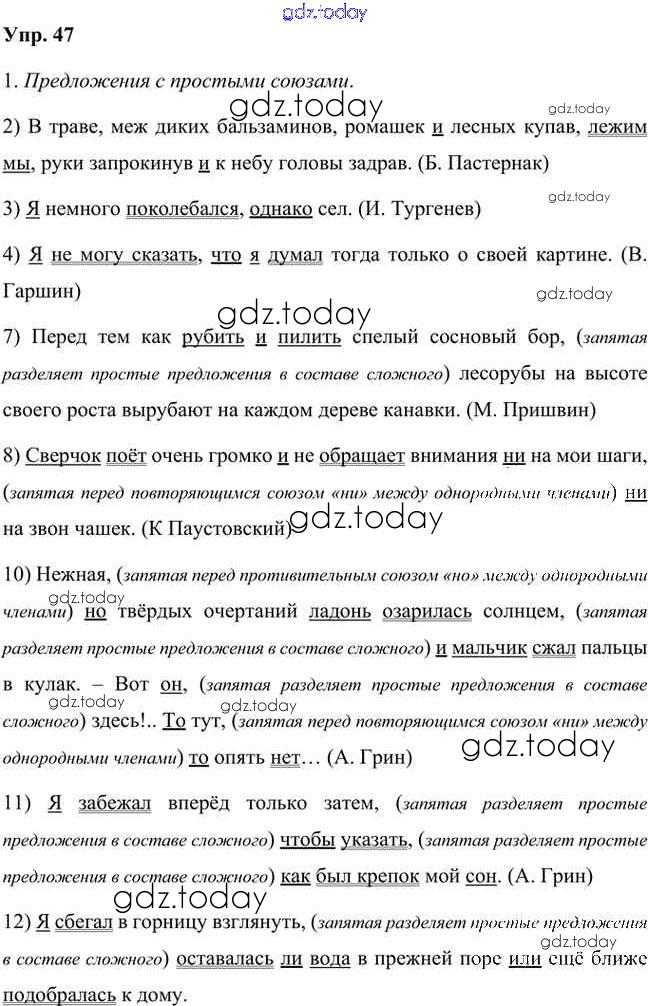 На страницах сайта gdz.today вы найдете учебный и вспомогательный материал, направленный на улучшения знаний школьной программы. ГДЗ - онлайн мир знаний Упражнения Часть 2 (решение) 47 Учебнику по Русскому языку для 7 класса Быстрова, Кибирева Русское слово Инновационная школа 2019