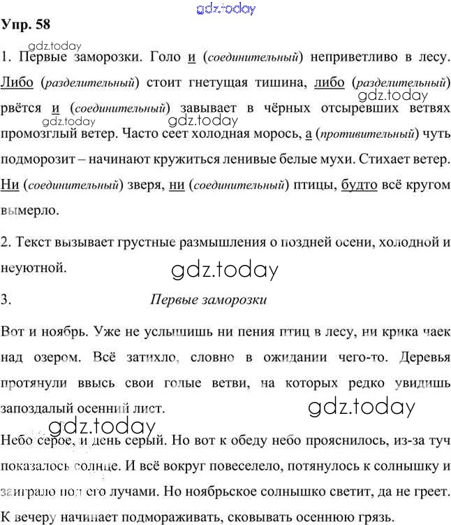 На страницах сайта gdz.today вы найдете учебный и вспомогательный материал, направленный на улучшения знаний школьной программы. ГДЗ - онлайн мир знаний Упражнения Часть 2 (решение) 58 Учебнику по Русскому языку для 7 класса Быстрова, Кибирева Русское слово Инновационная школа 2019