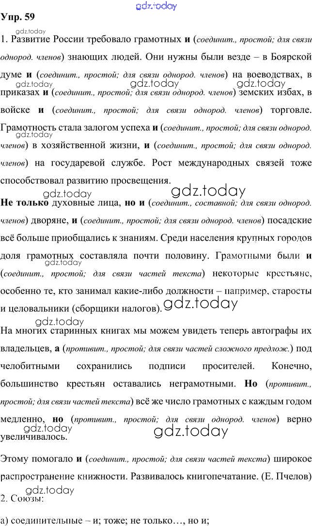 На страницах сайта gdz.today вы найдете учебный и вспомогательный материал, направленный на улучшения знаний школьной программы. ГДЗ - онлайн мир знаний Упражнения Часть 2 (решение) 59 Учебнику по Русскому языку для 7 класса Быстрова, Кибирева Русское слово Инновационная школа 2019