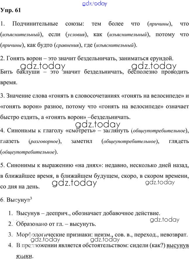 На страницах сайта gdz.today вы найдете учебный и вспомогательный материал, направленный на улучшения знаний школьной программы. ГДЗ - онлайн мир знаний Упражнения Часть 2 (решение) 61 Учебнику по Русскому языку для 7 класса Быстрова, Кибирева Русское слово Инновационная школа 2019