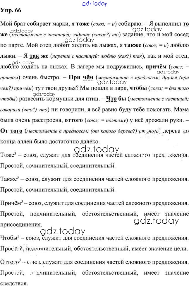 На страницах сайта gdz.today вы найдете учебный и вспомогательный материал, направленный на улучшения знаний школьной программы. ГДЗ - онлайн мир знаний Упражнения Часть 2 (решение) 66 Учебнику по Русскому языку для 7 класса Быстрова, Кибирева Русское слово Инновационная школа 2019