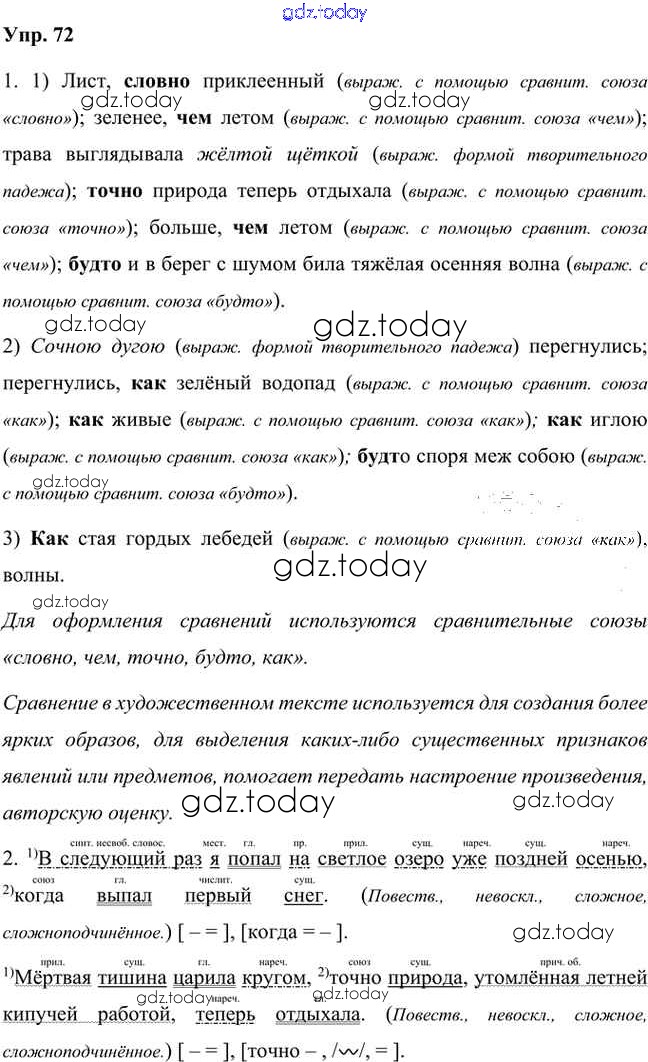 На страницах сайта gdz.today вы найдете учебный и вспомогательный материал, направленный на улучшения знаний школьной программы. ГДЗ - онлайн мир знаний Упражнения Часть 2 (решение) 72 Учебнику по Русскому языку для 7 класса Быстрова, Кибирева Русское слово Инновационная школа 2019