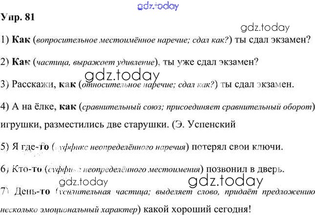 На страницах сайта gdz.today вы найдете учебный и вспомогательный материал, направленный на улучшения знаний школьной программы. ГДЗ - онлайн мир знаний Упражнения Часть 2 (решение) 81 Учебнику по Русскому языку для 7 класса Быстрова, Кибирева Русское слово Инновационная школа 2019
