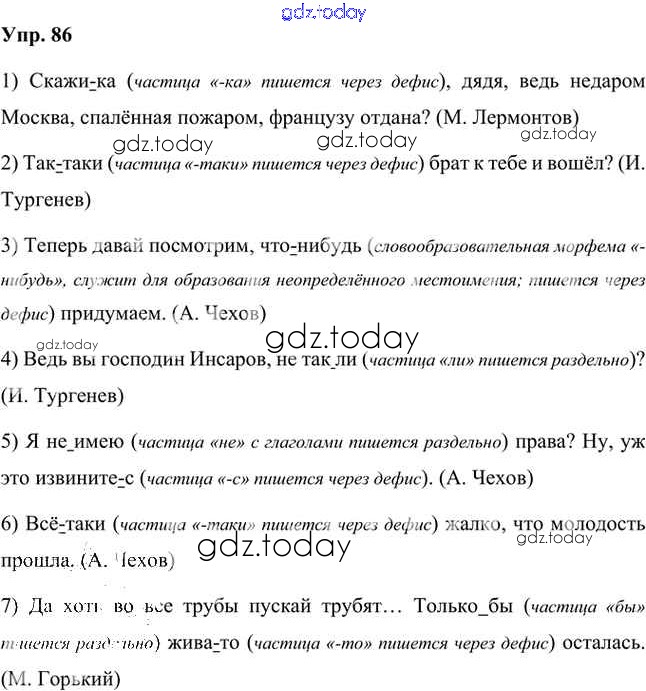 На страницах сайта gdz.today вы найдете учебный и вспомогательный материал, направленный на улучшения знаний школьной программы. ГДЗ - онлайн мир знаний Упражнения Часть 2 (решение) 86 Учебнику по Русскому языку для 7 класса Быстрова, Кибирева Русское слово Инновационная школа 2019