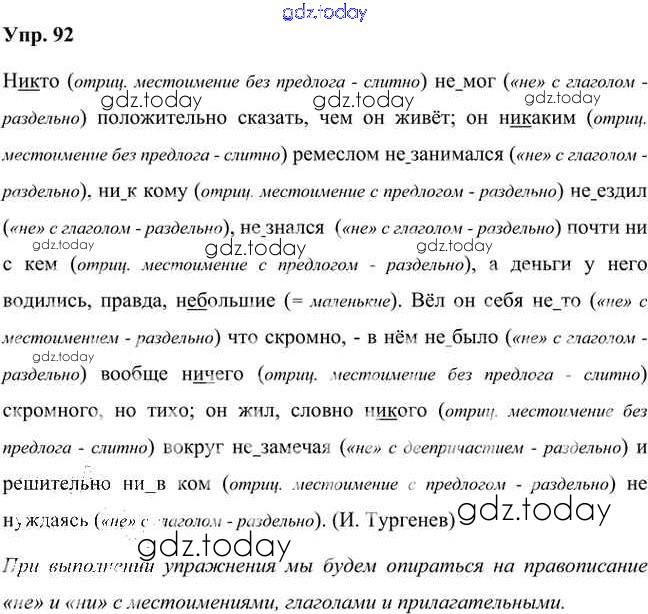 На страницах сайта gdz.today вы найдете учебный и вспомогательный материал, направленный на улучшения знаний школьной программы. ГДЗ - онлайн мир знаний Упражнения Часть 2 (решение) 92 Учебнику по Русскому языку для 7 класса Быстрова, Кибирева Русское слово Инновационная школа 2019
