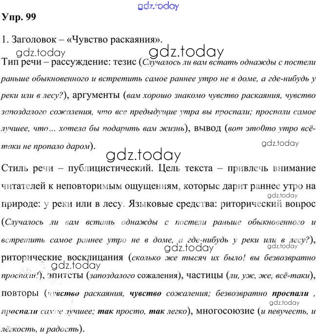 На страницах сайта gdz.today вы найдете учебный и вспомогательный материал, направленный на улучшения знаний школьной программы. ГДЗ - онлайн мир знаний Упражнения Часть 2 (решение) 99 Учебнику по Русскому языку для 7 класса Быстрова, Кибирева Русское слово Инновационная школа 2019