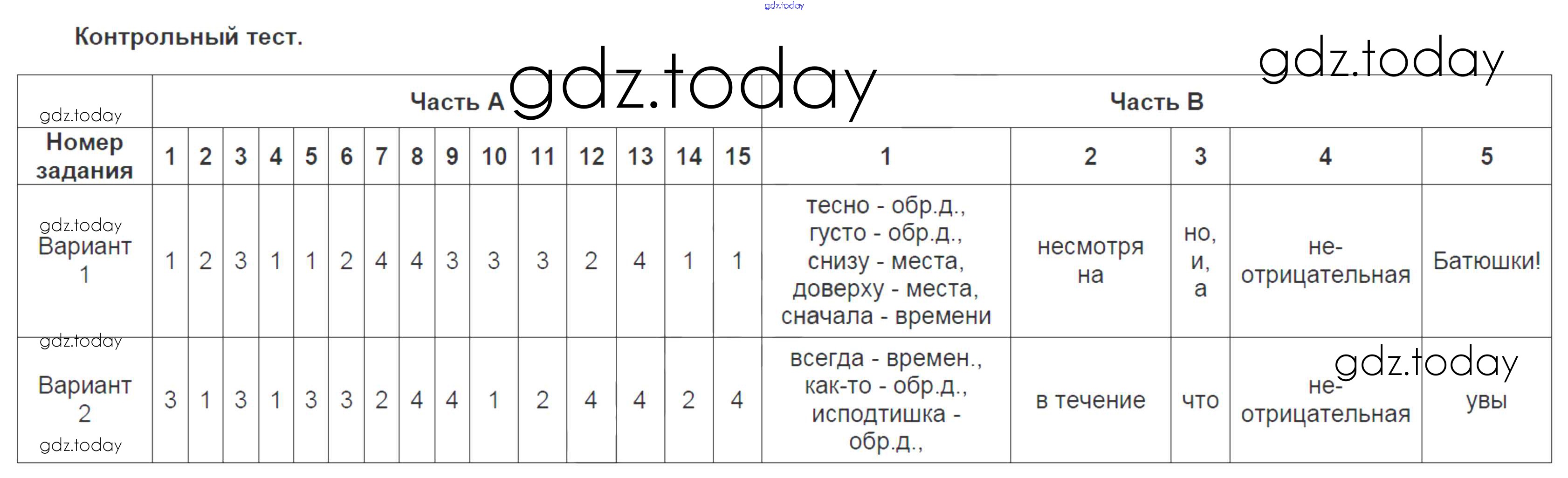 Ответы к Контрольный тест Служебные части речи. Междометия (решение) 1 Тестам по Русскому языку для 7 класса Груздева Экзамен УМК 2015