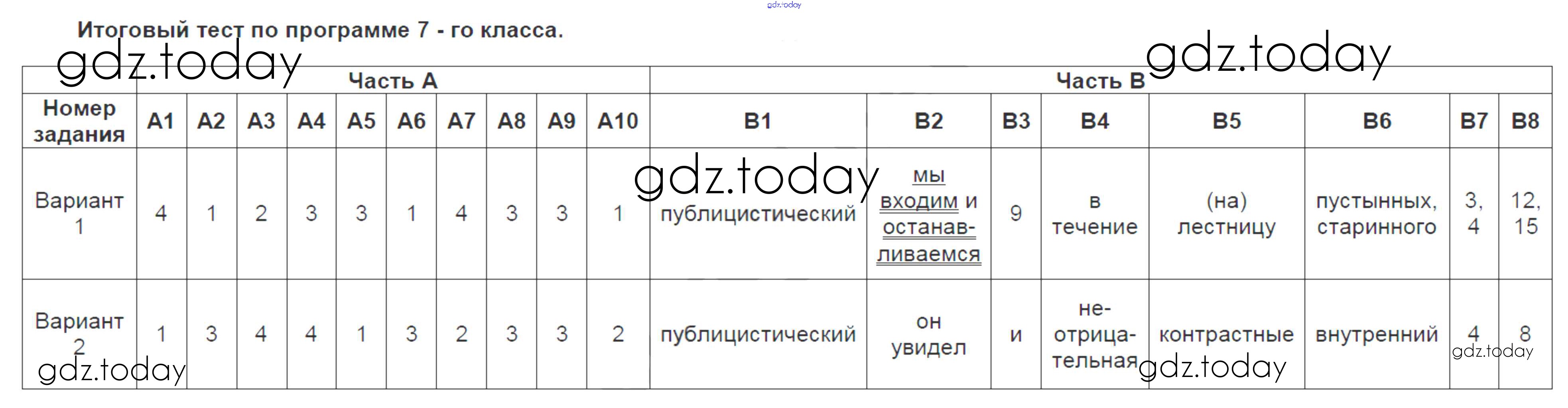 Ответы к Итоговый тест Повторение (решение) 1 Тестам по Русскому языку для 7 класса Груздева Экзамен УМК 2015