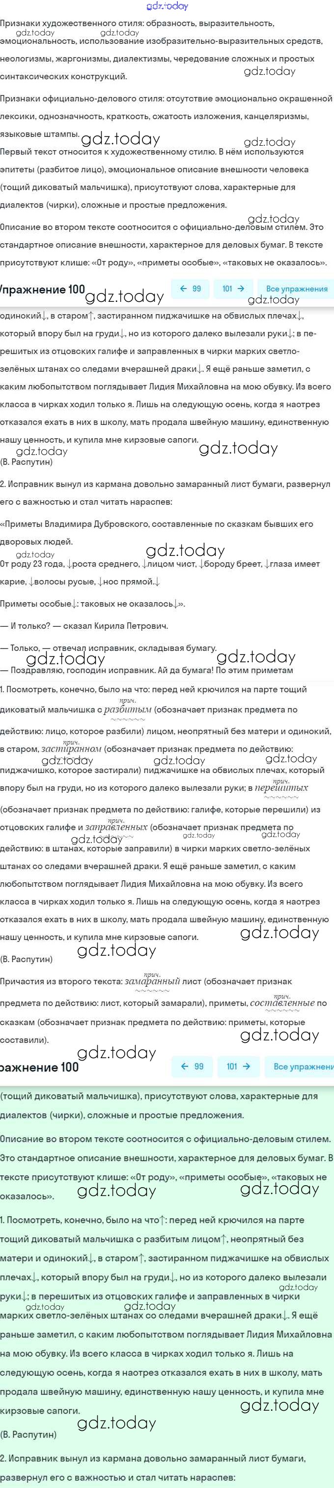 На страницах сайта gdz.today вы найдете учебный и вспомогательный материал, направленный на улучшения знаний школьной программы. ГДЗ - онлайн мир знаний Решение. Упражнения 100 Учебнику по Русскому языку для 7 класса Баранов, Ладыженская Просвещение, Просвещение 2015, 2022
