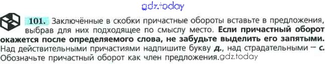 На страницах сайта gdz.today вы найдете учебный и вспомогательный материал, направленный на улучшения знаний школьной программы. ГДЗ - онлайн мир знаний Решение к упражнениям 101 Учебнику по Русскому языку для 7 класса Баранов, Ладыженская Просвещение УМК 2015