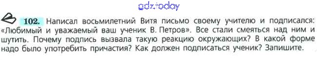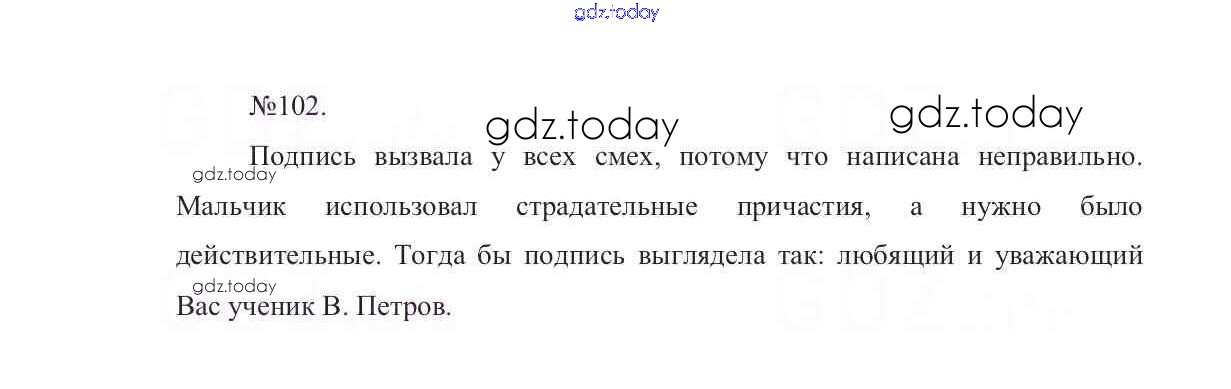 На страницах сайта gdz.today вы найдете учебный и вспомогательный материал, направленный на улучшения знаний школьной программы. ГДЗ - онлайн мир знаний Решение к упражнениям 102 Учебнику по Русскому языку для 7 класса Баранов, Ладыженская Просвещение УМК 2015