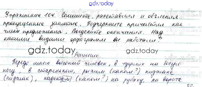 На страницах сайта gdz.today вы найдете учебный и вспомогательный материал, направленный на улучшения знаний школьной программы. ГДЗ - онлайн мир знаний Решение. Упражнения 104 Учебнику по Русскому языку для 7 класса Баранов, Ладыженская Просвещение, Просвещение 2015, 2022