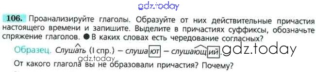 На страницах сайта gdz.today вы найдете учебный и вспомогательный материал, направленный на улучшения знаний школьной программы. ГДЗ - онлайн мир знаний Решение к упражнениям 106 Учебнику по Русскому языку для 7 класса Баранов, Ладыженская Просвещение УМК 2015